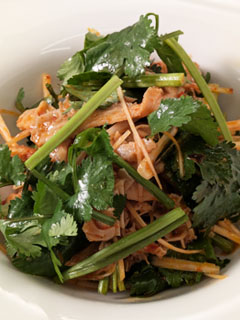 - 3. たっぷりの湯に長ねぎ(青い部分)としょうがの皮を入れたものに、牛ハチノスの細切りを入れ、強火で約30分茹でる。